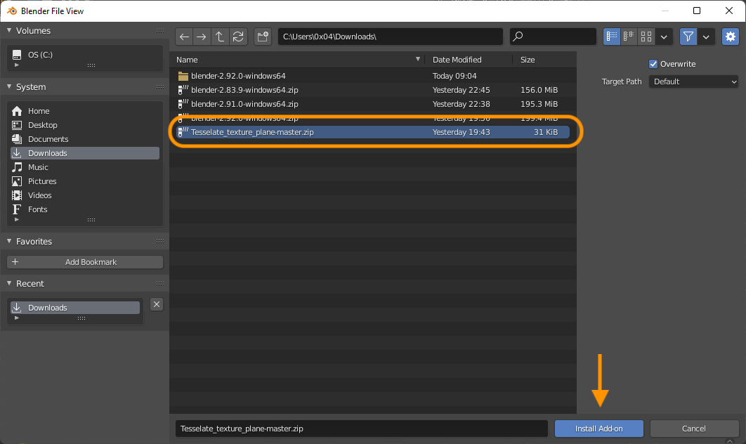 お待たせしました、ようやくTesselate texture planeのインストール準備ができました。