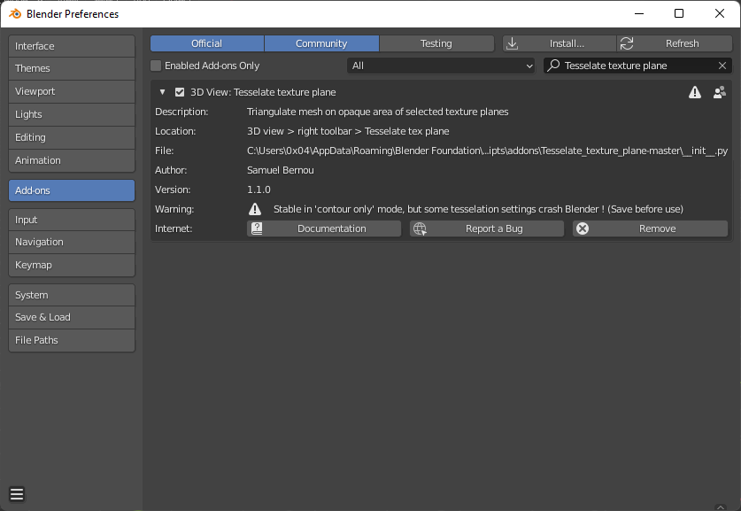 [Blender] アドオン"Tesselate texture plane"を手動でインストールする